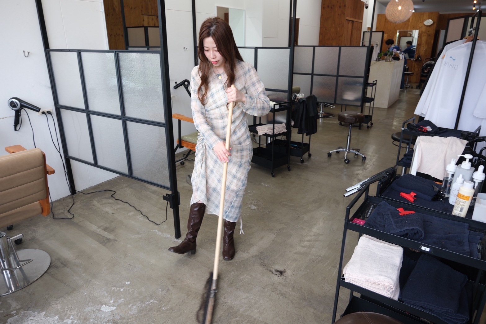 各自、明日もお客さまを気持ちよくお迎えできるよう掃除をして1日を締めくくります。19:00 退勤(予約がなければネット予約の受付が終わる18時台に退勤)